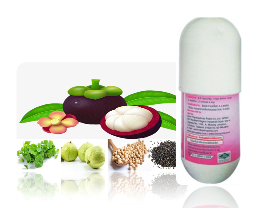 ลีฟแคปซูล (LIV) สกัดจากผลมังคุด บัวบก งาดำ ถั่วเหลือง ฝรั่ง