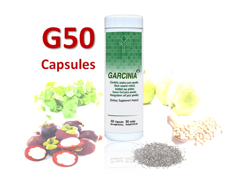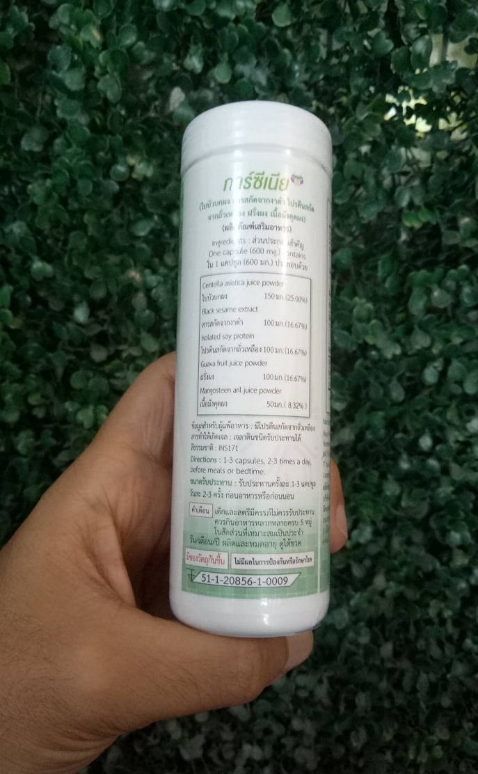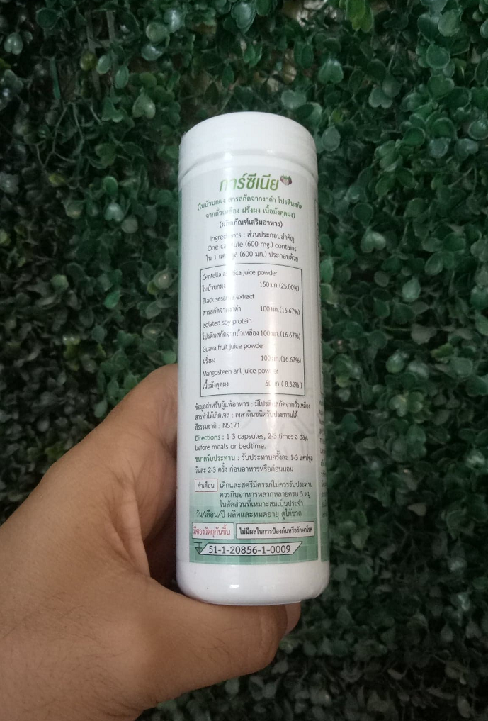 การ์ซีเนีย แคปซูล สกัดจากพืชธรรมชาติมังคุด บัวบก งาดำ ถั่วเหลือง ฝรั่ง มีให้เลือกทั้ง 50 แคปซูล และ 90 แคปซูล